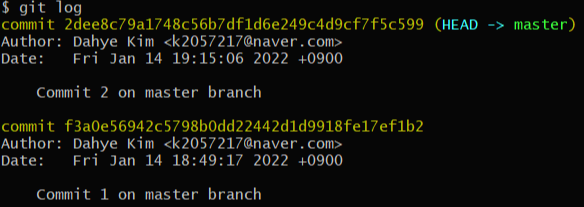โซ ์ดํ ์ธ๋ฒ์งธ ์ปค๋ฐ์ ์์ฑํ ํ Git์ ํ์คํ ๋ฆฌ๋ฅผ ๋ณด์