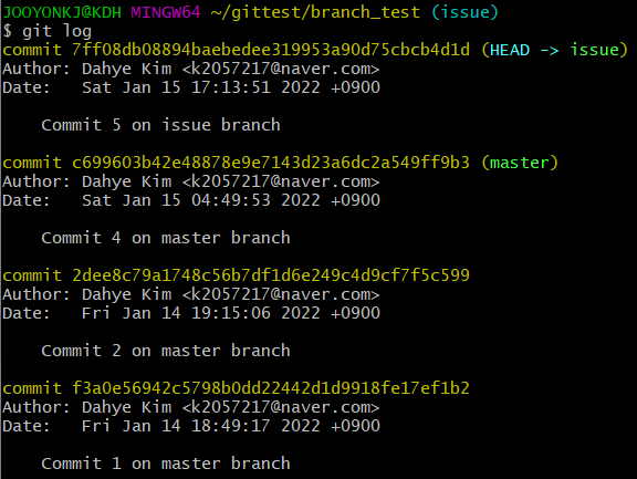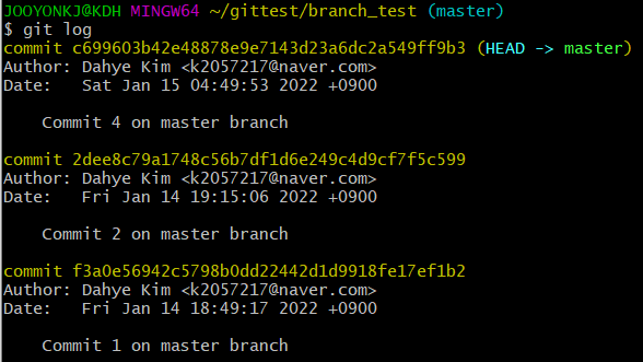 ์ด๋์ Git ํ์คํ ๋ฆฌ๋ ์๋์ ๊ฐ๋ค.