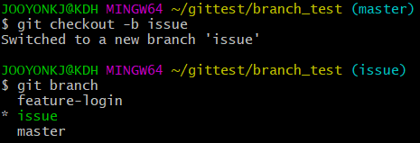 โซ $ git branch ์์ฑํ _๋ธ๋์น๋ช ์ ๋ ฅ