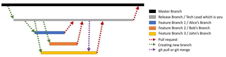 - Git์ ๊ธฐ๋ณธ์ ์ผ๋ก master ๋ธ๋์น๋ฅผ ์์ฑํ๋ค.
