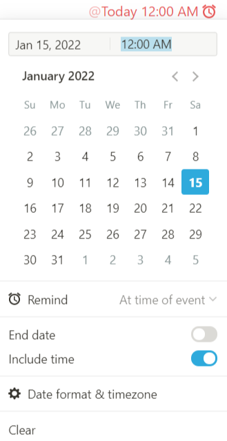 * ๋ง์ฝ, Remind์์ ์๊ฐ์ ๊ฐ์ด ๋ฃ์ด์ฃผ๊ณ ์ถ๋ค๋ฉด, Include Time์ ํด๋ฆญํ์ฌ ์ํ๋ ์๊ฐ์ ์ง์ ํด ์ค๋ค.
