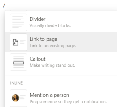 ํ์ด์ง๋ฅผ ๋ถ๋ฌ๋ด๋๋ฐ์๋ Mention a Page, Link to Page ๋ ๊ฐ์ง ๋ฐฉ๋ฒ์ด ์๋ค.