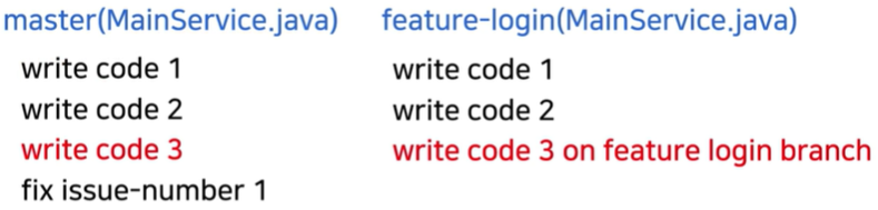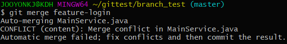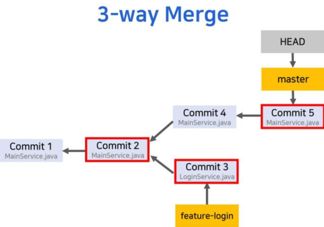 ๊ทธ๋ผ feature-login์ Commit 6๋ฅผ ์์ฑํ๊ณ , Commit 5์ ๊ฐ์ด MainService.java ํ์ผ์ ์์ ํ ํ merge๋ฅผ ํ๋ค๋ฉด ์ด๋ป๊ฒ ๋ ๊น?