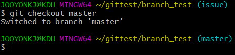 โซ merge๋ฅผ ์ํด master ๋ธ๋์น๋ก ์ด๋ํ ํ [ $ git checkout master ]