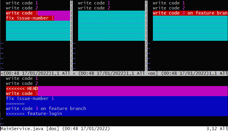 ์ด๋ ๊ฒ mergtool์ ์ด์ฉํ๋ฉด ์ธ๊ฐ์ง view๋ฅผ ๋์์ ๋น๊ตํ๋ฉด์ ๋ณด๋ค ํธํ๊ฒ merge๋ฅผ ์งํํ ์ ์๋ค.