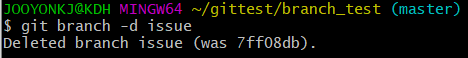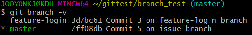โซ $ git branch -v ๋ช ๋ น์ด๋ก ํ์ธํด๋ณด๋ฉด issue ๋ธ๋์น๊ฐ ์ญ์ ๋ ๊ฒ์ ๋ณผ ์ ์๋ค.
