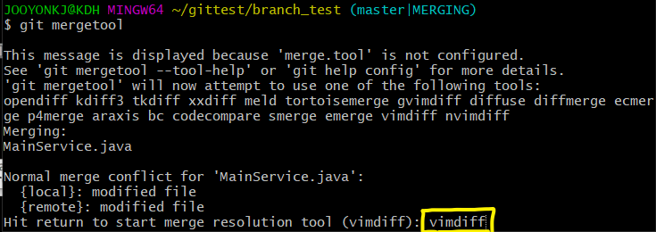 2. mergetool์ ์ด์ฉํด์ merge ํ๊ธฐ