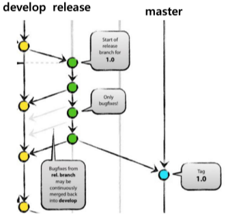 - develop ๋ธ๋์น๋ก๋ถํฐ ๋ถ๊ธฐ๋์ด ์ฌ์ฉ๋๋ค. (feature ๋ธ๋์น์ ๋จ์ → ๊ธฐ๋ฅ, ์คํ๋ฆฐํธ ์ฃผ๊ธฐ ๋ฑ)