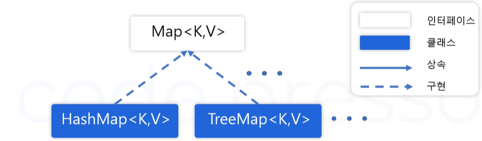 Map μΈν°νμ΄μ€λ ꡬ쑰μμ μ°¨μ΄λ‘ Colleciton μΈν°νμ΄μ€λ₯Ό μμλ°μ§ μκ³ λ μμ μΌλ‘ μΈν°νμ΄μ€λ₯Ό ꡬννκ² λλ€)