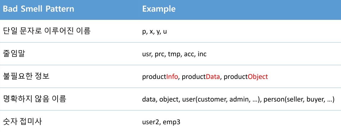 ๊ทธ๋ผ Clean Variable Naming์ Bad Smell์ ๋ํด์๋ ์์๋ณด์