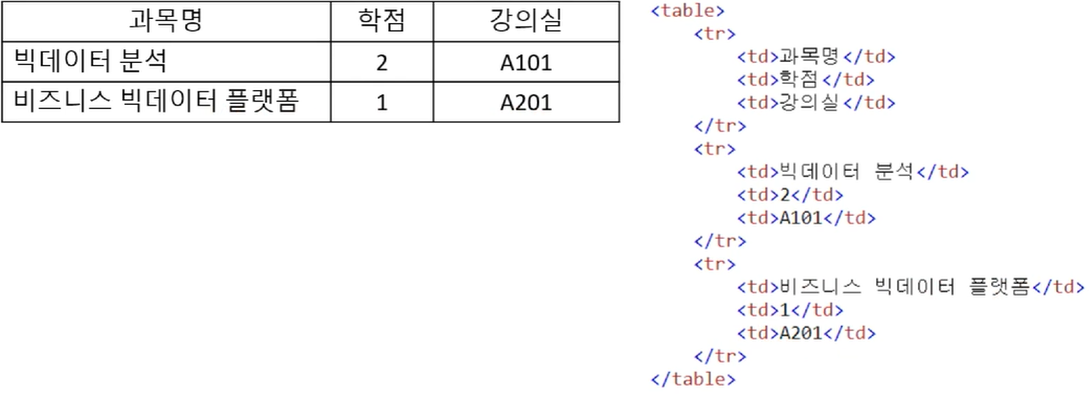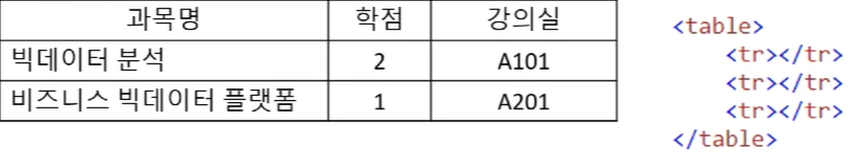 - <tr> ํ ๋ด๋ถ์ 1๊ฐ์ ํ </tr>
