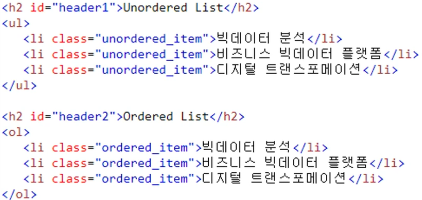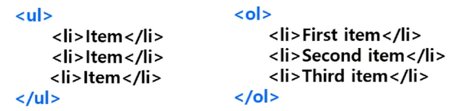 * HTML์ List๋ unordered list์ ordered list ๋ ๊ฐ์ง ์ข ๋ฅ๊ฐ ์๋ค