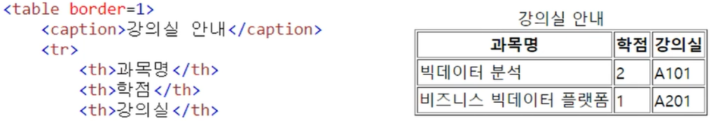 - <table border = x> → ํ์ ํ ๋๋ฆฌ ๋๊ป ์ง์