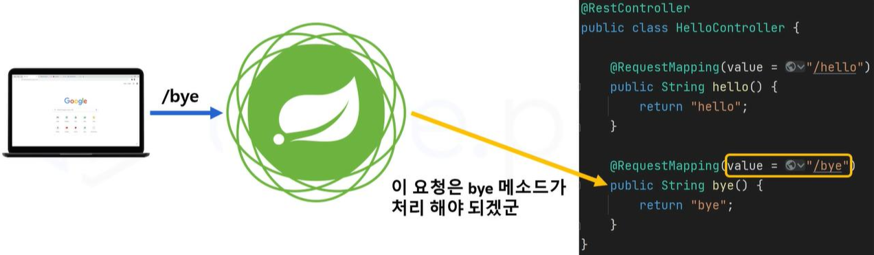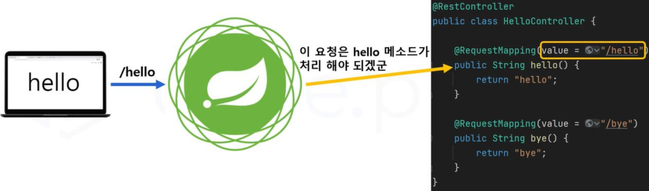 → ํน์ Request๋ฅผ ์ฒ๋ฆฌํ๋ ๋ฉ์๋๋ฅผ ์ง์ ํ๋ ๊ฒ์ผ๋ก, ํด๋์ค ๋๋ ๋ฉ์๋ ์๋จ์ ๋ช ์ํ๋ค.