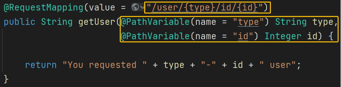 http://localhost:8080/user/admin/id/100 → ์ถ๋ ฅ๊ฐ: You requested admin-100 user