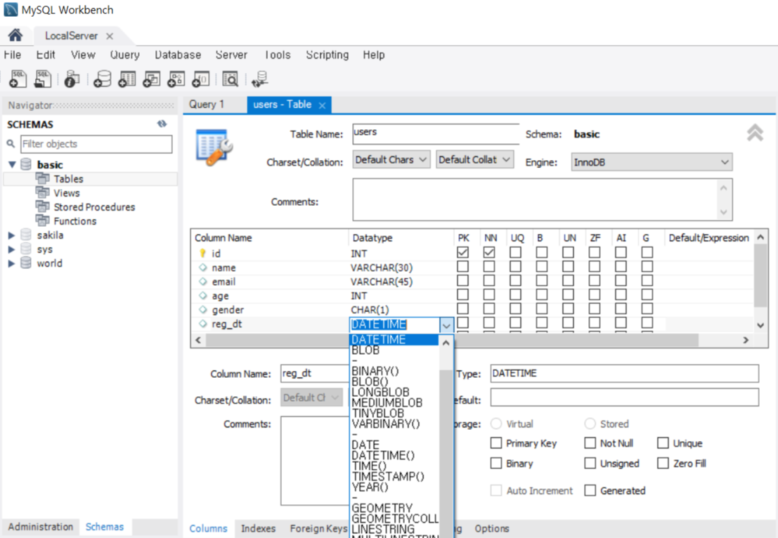 2. 'Column Name'์ ์ ๋ ฅํ๊ณ 'Datatype'์ ์ค์ ํ ํ 'Option'์ ์ฒดํฌํ๊ณ 'Apply' ํด๋ฆญํ๋ฉด ๋!