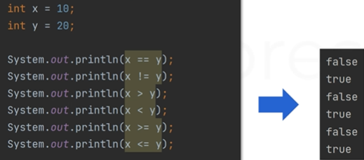 - λΉκ΅ μ°μ°μμ κ²°κ³Όλ boolean κ° (true or false)