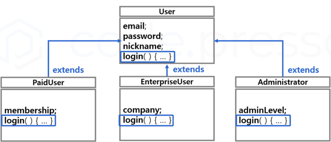 μμ μμ μ½λλ€μ²λΌ λΆλͺ¨ν΄λμ€μΈ User ν΄λμ€μμ μμλ°μ login λ©μλλ₯Ό κ·Έλλ‘ μ¬μ©νμ§ μκ³ , loginμ΄λΌλ κ²μ μ μ¬νμ§λ§ μ½λλ₯Ό μκΈ° νΉμ±μ λ§κ² ꡬννμκΈ° λλ¬Έμ λμλ€μ΄ μ‘°κΈμ© λ€λ₯Έ κ²μ λ³Ό μ μλ€. μ΄λ κ² μ€λ²λΌμ΄λ©μ ν΅ν΄ μ½λμ κ°κ²°μ±μ μ μ§νλ©΄μ λ΄μ©μ νμ₯μν¬ μ μλ€λ μ₯μ μ΄ μλ€.