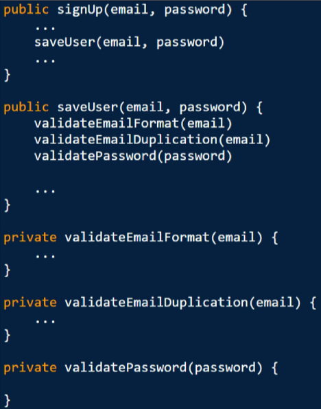 → ์ฝ๋๋ฅผ ์ฝ๊ธฐ ์ํด ์ฌ๋ฌ๋ฒ์ Jump ํ๋ ๊ฒ์ ๋ฐฉ์งํ๋ ค๋ฉด ๊ด๋ จ์๋ ๋ฉ์๋๋ค์ ๊ฐ๊น์ด ๋ฐฐ์นํด์ผํ๋ค.