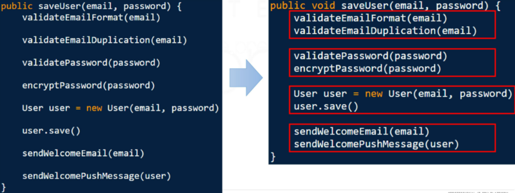 → Method๋ฅผ ์ถ๊ฐํ ๋๋ ์๊ฐ์ ์์๊ฐ ์๋ ๋ ผ๋ฆฌ์ ์ธ ๊ด๋ จ์ฑ์ ๋ฐ๋ผ ๋ฐฐ์นํด์ผ ํ๋ค.
