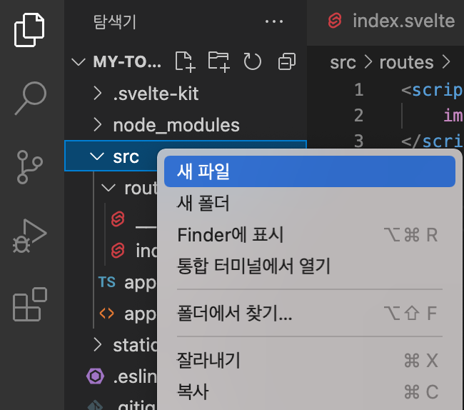 [Svelte] VS Code์ ํ๊ฒฝ ์ธํ ํ๊ธฐ