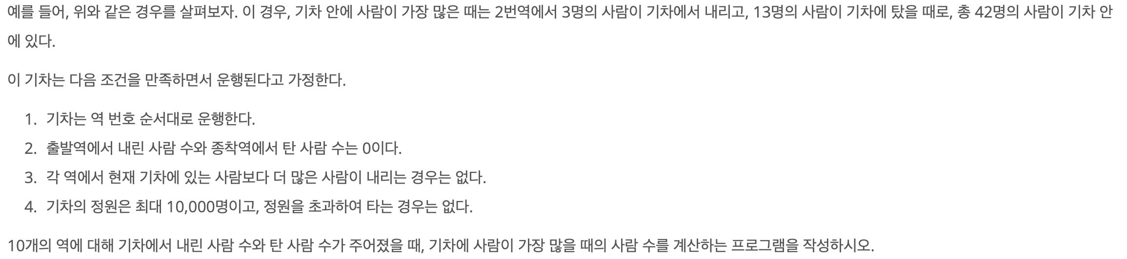 마지막으로 left 리스트에서 가장 기차에 사람이 많았을 때의 사람 수를 max함수를 사용하여 출력하면 된다.